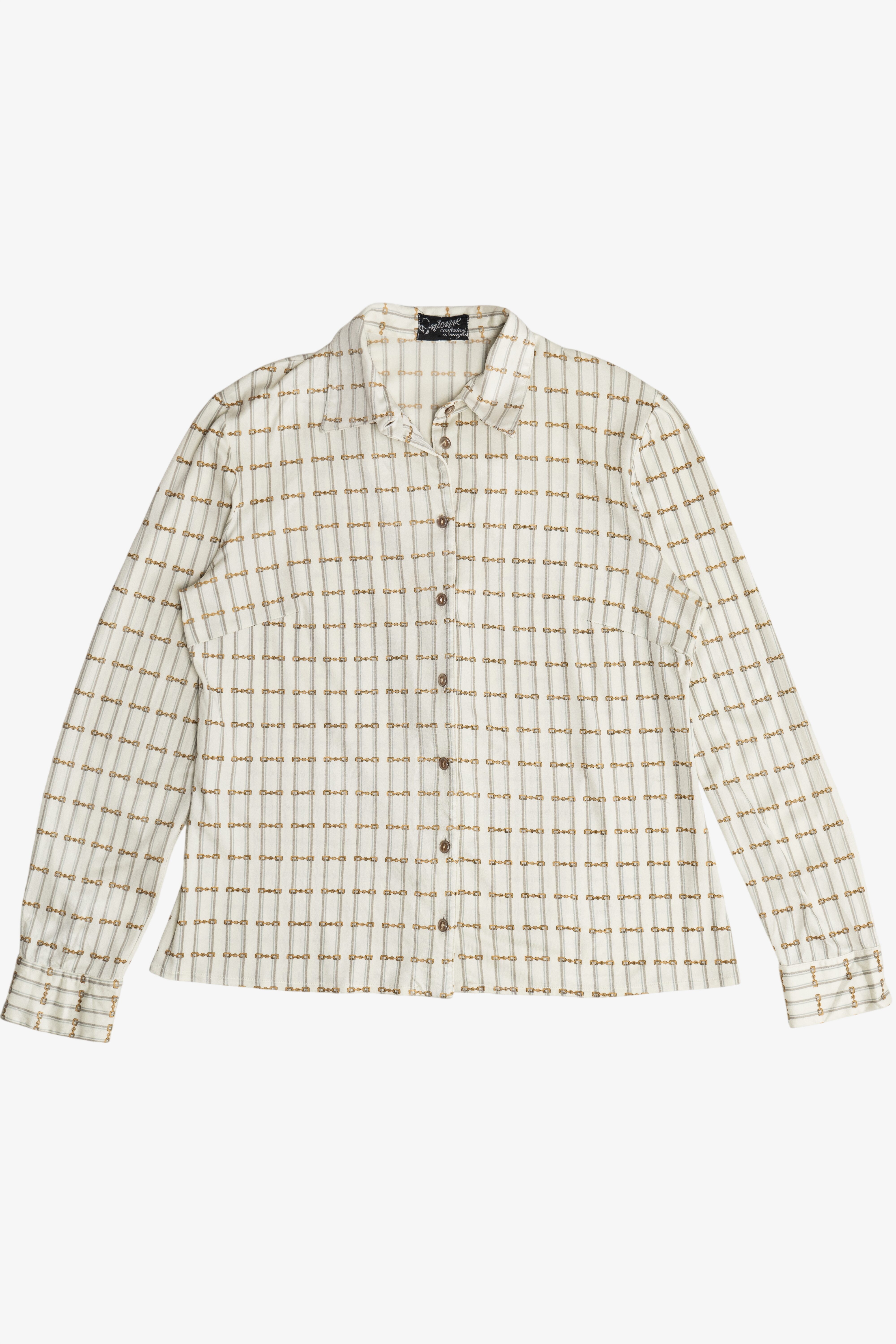 Vintage Antoine Equestrian Chain Link Polyester Button Up Shirt (1980s)