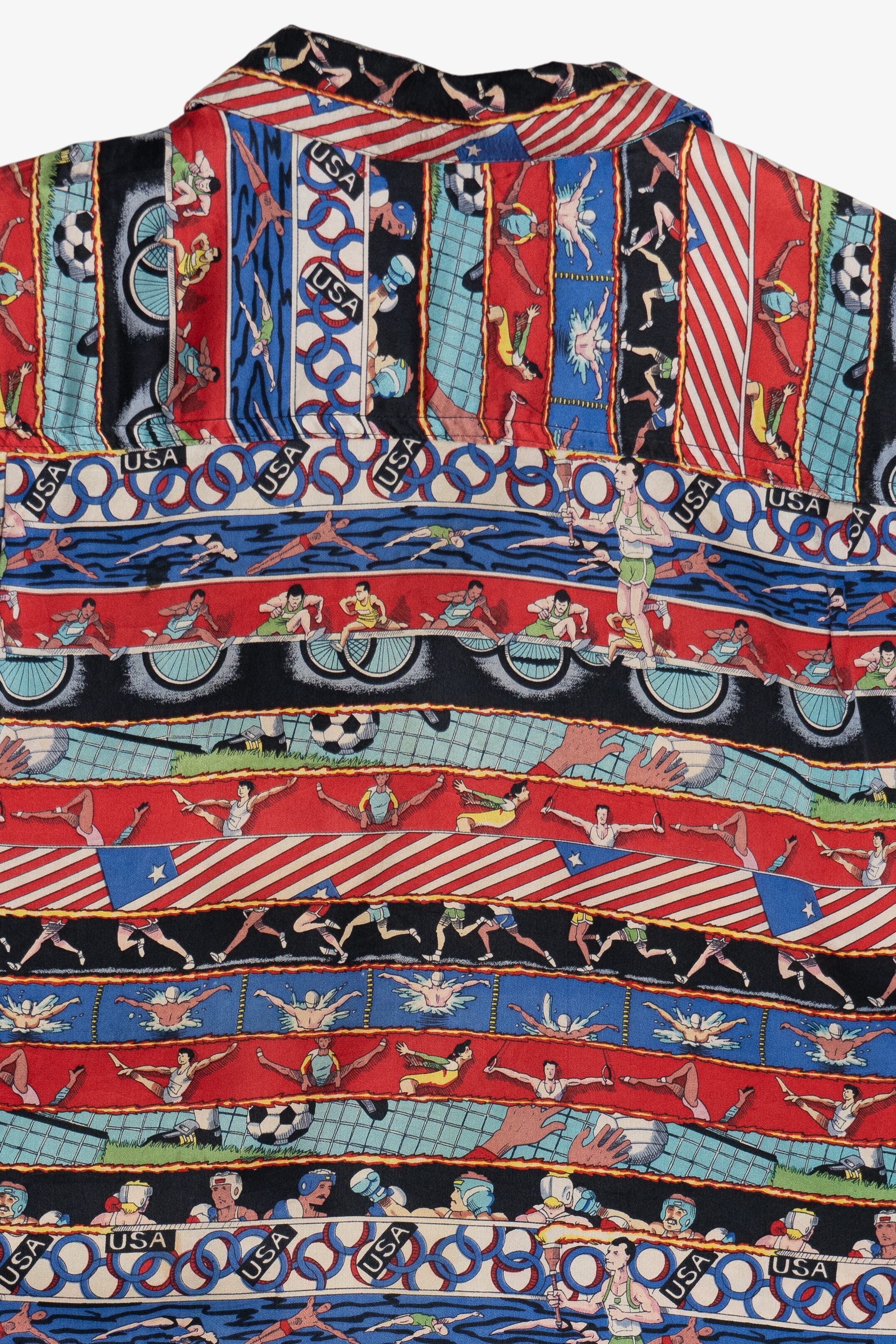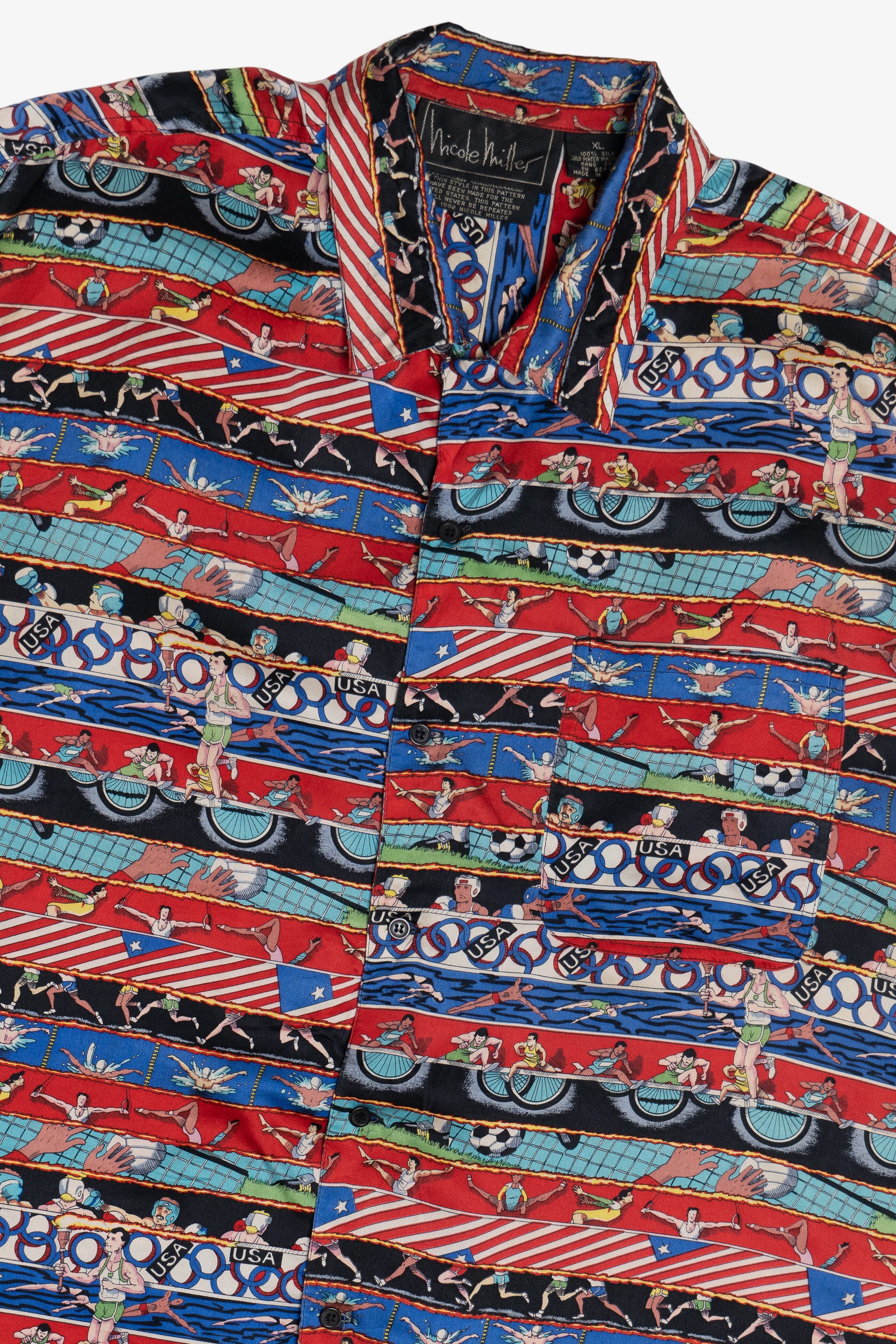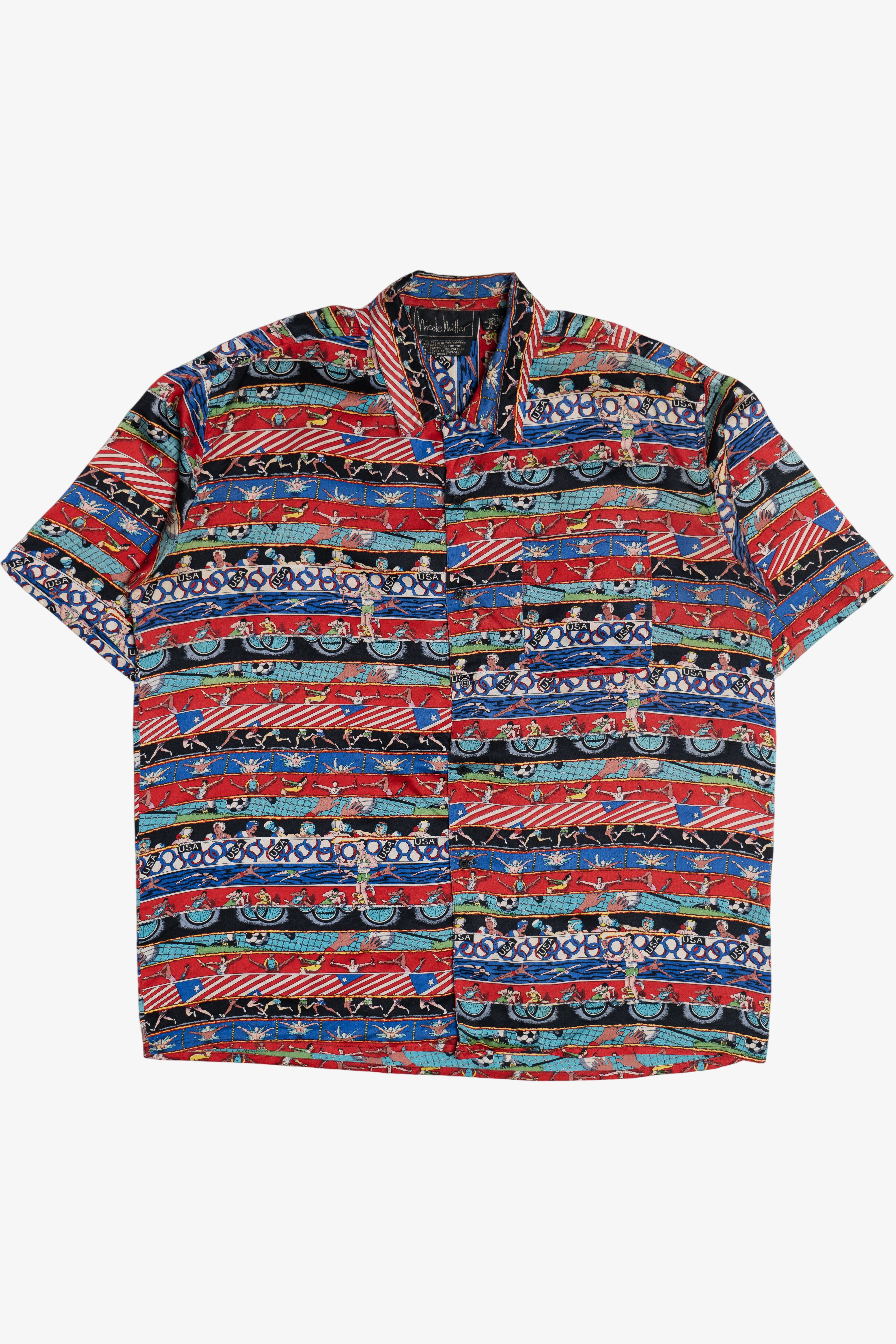 Vintage 1992 Summer Olympics Nicole Miller Exclusive Silk Loop Button Up Shirt (1990s)