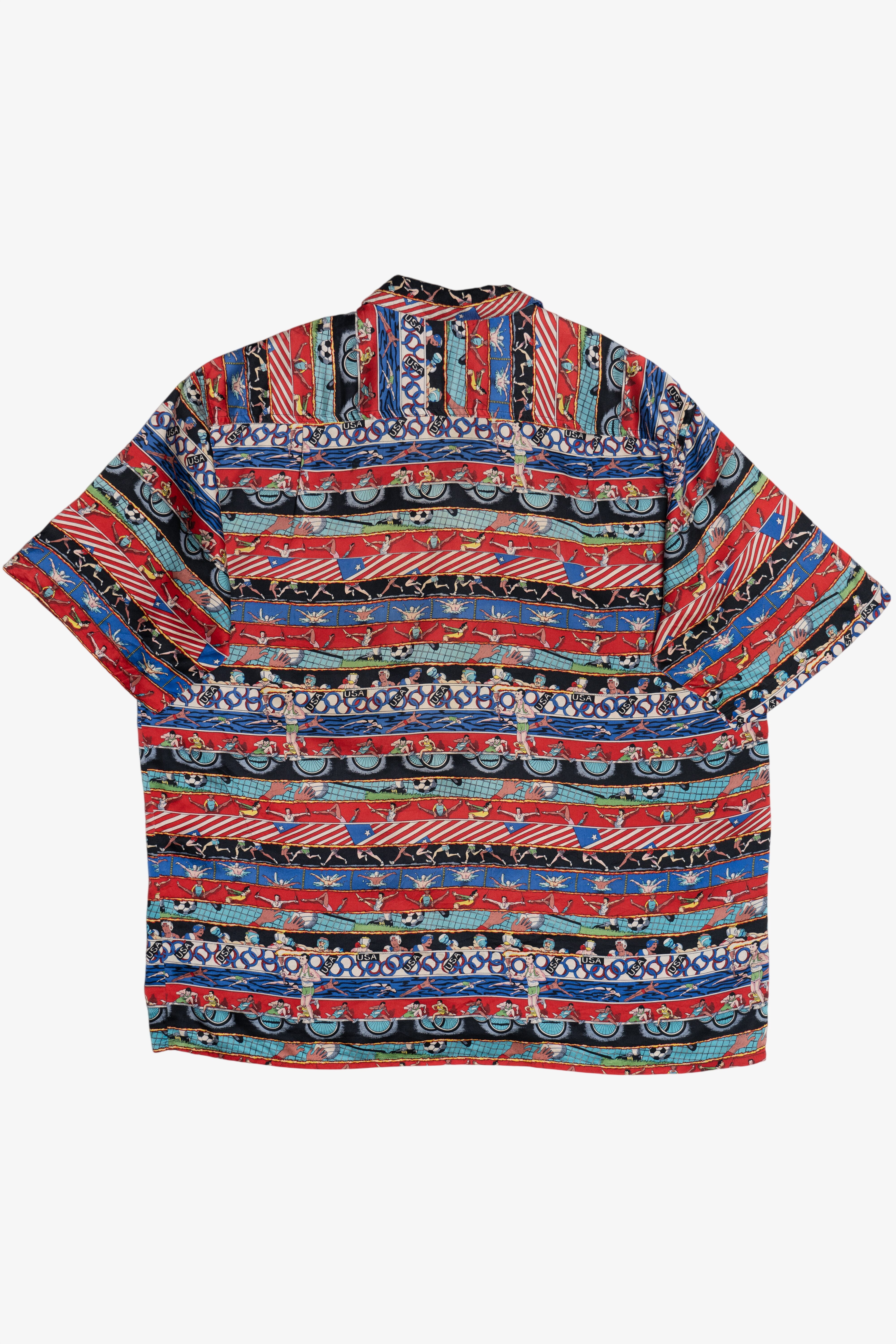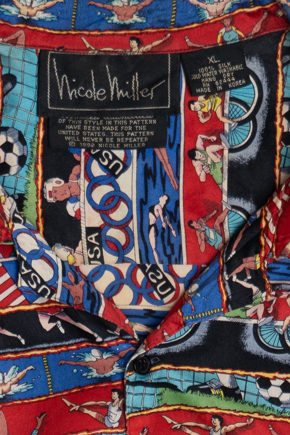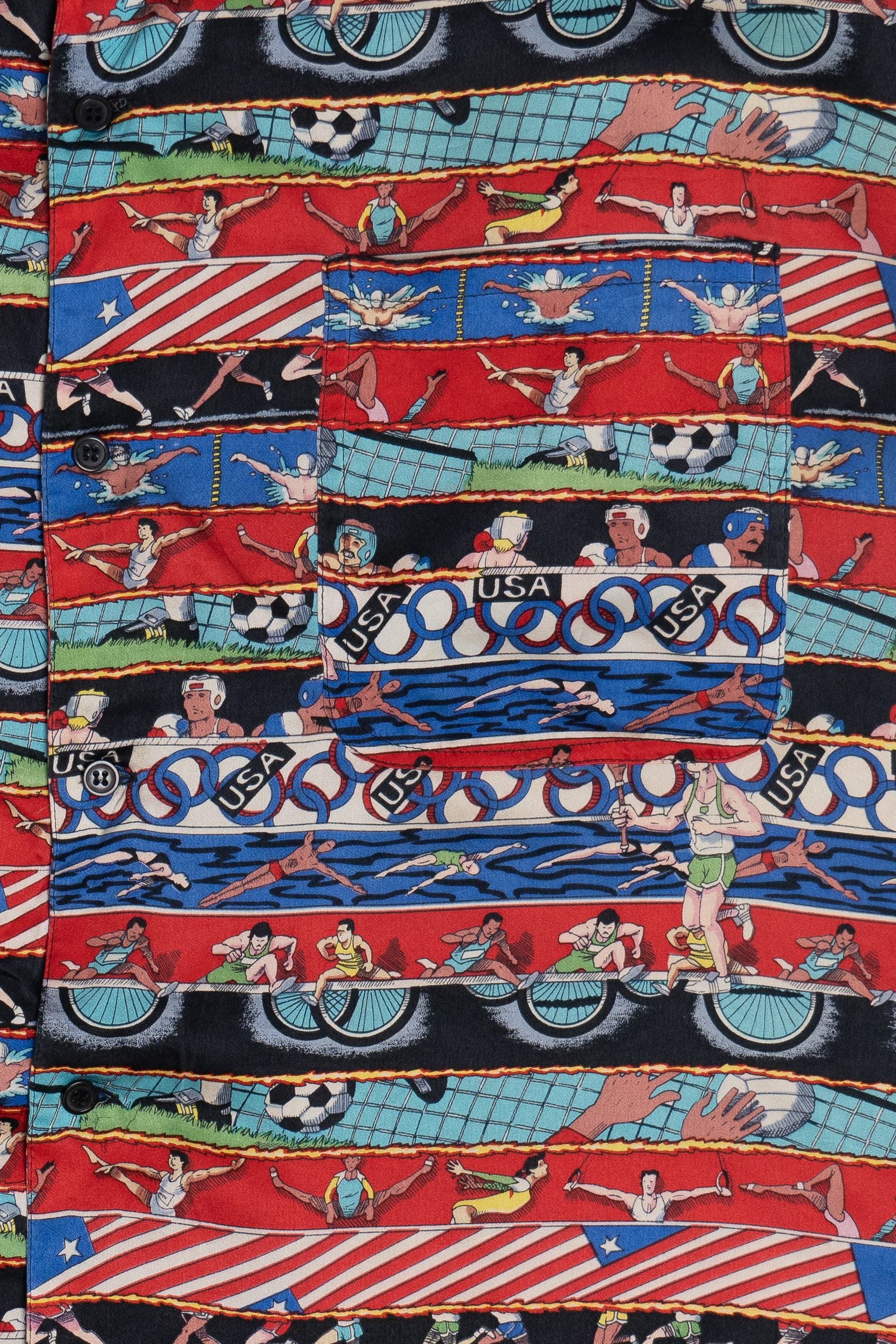 Vintage 1992 Summer Olympics Nicole Miller Exclusive Silk Loop Button Up Shirt (1990s)