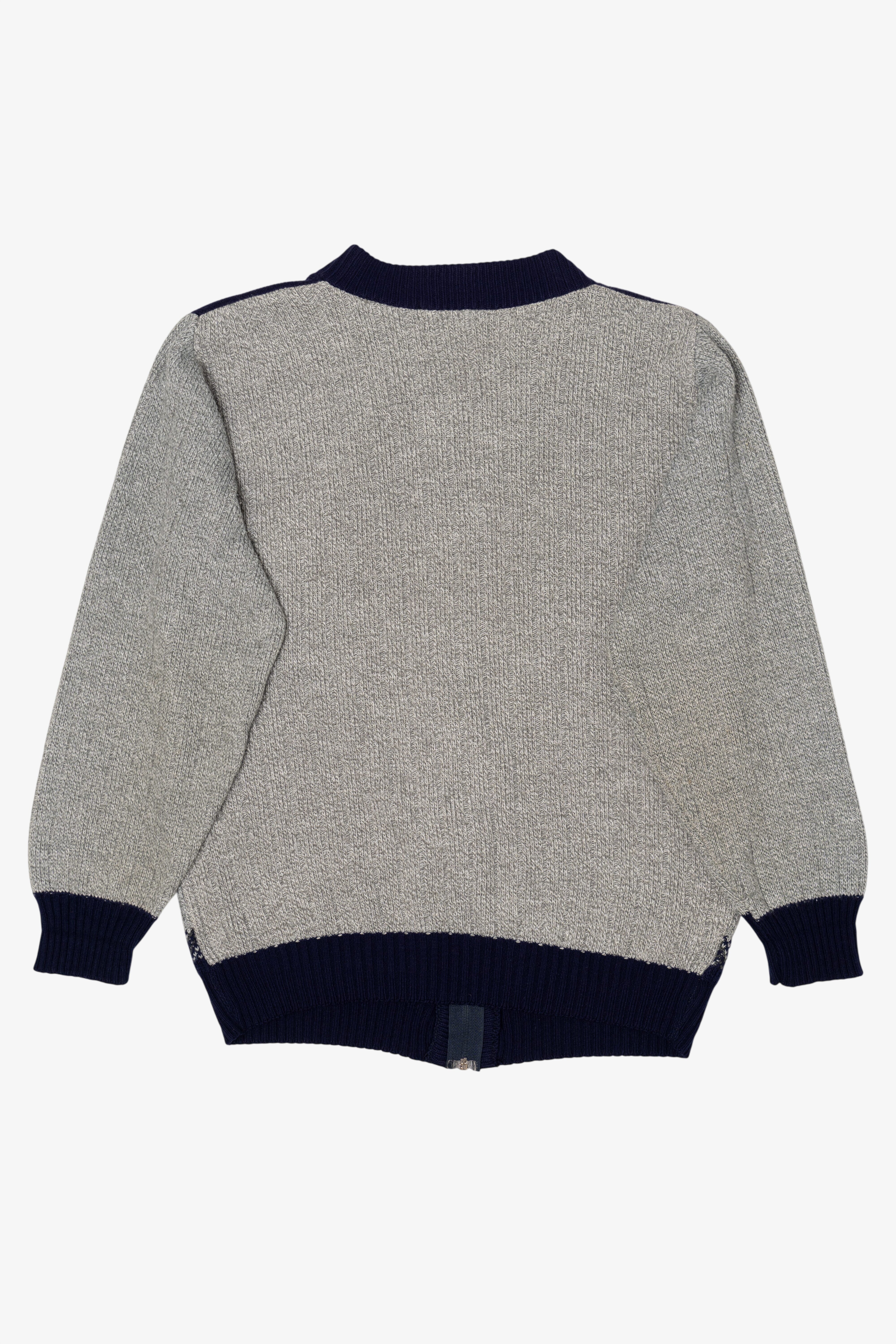 Vintage Gray And Navy Blue Bellisimo Zip Up Sweater (1990s)