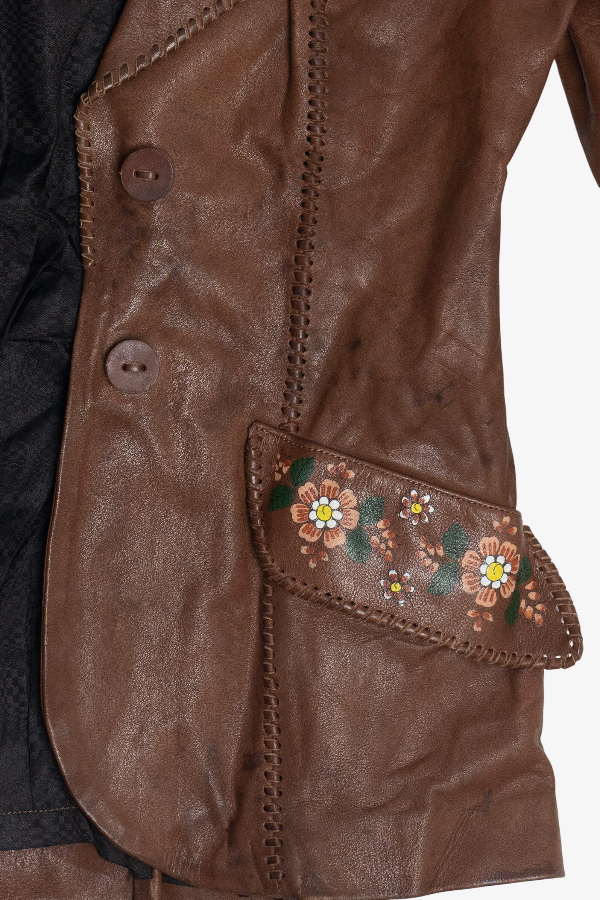 Vintage Char Hand Painted Whipstitch Leather Blazer Jacket (1970s)