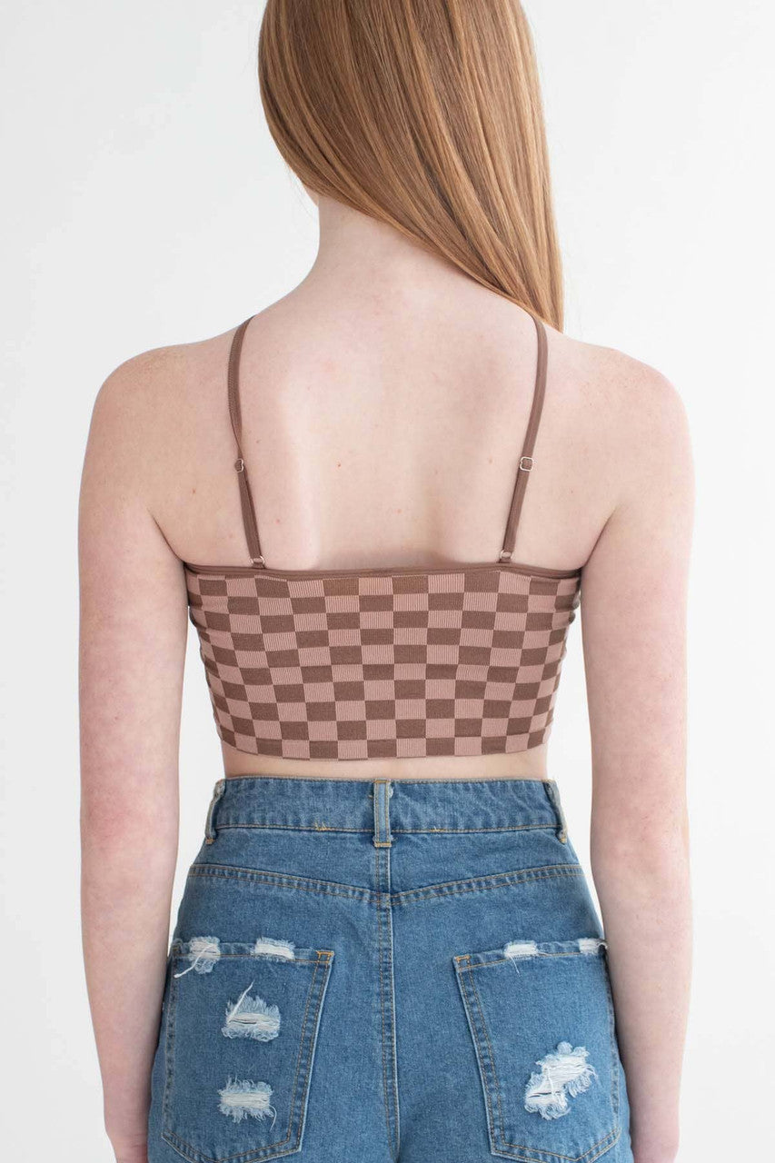 Salmon Pink Checkered Seamless Y Neck Crop Cami
