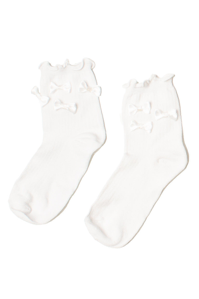 Satin Bow Lettuce Edge Socks
