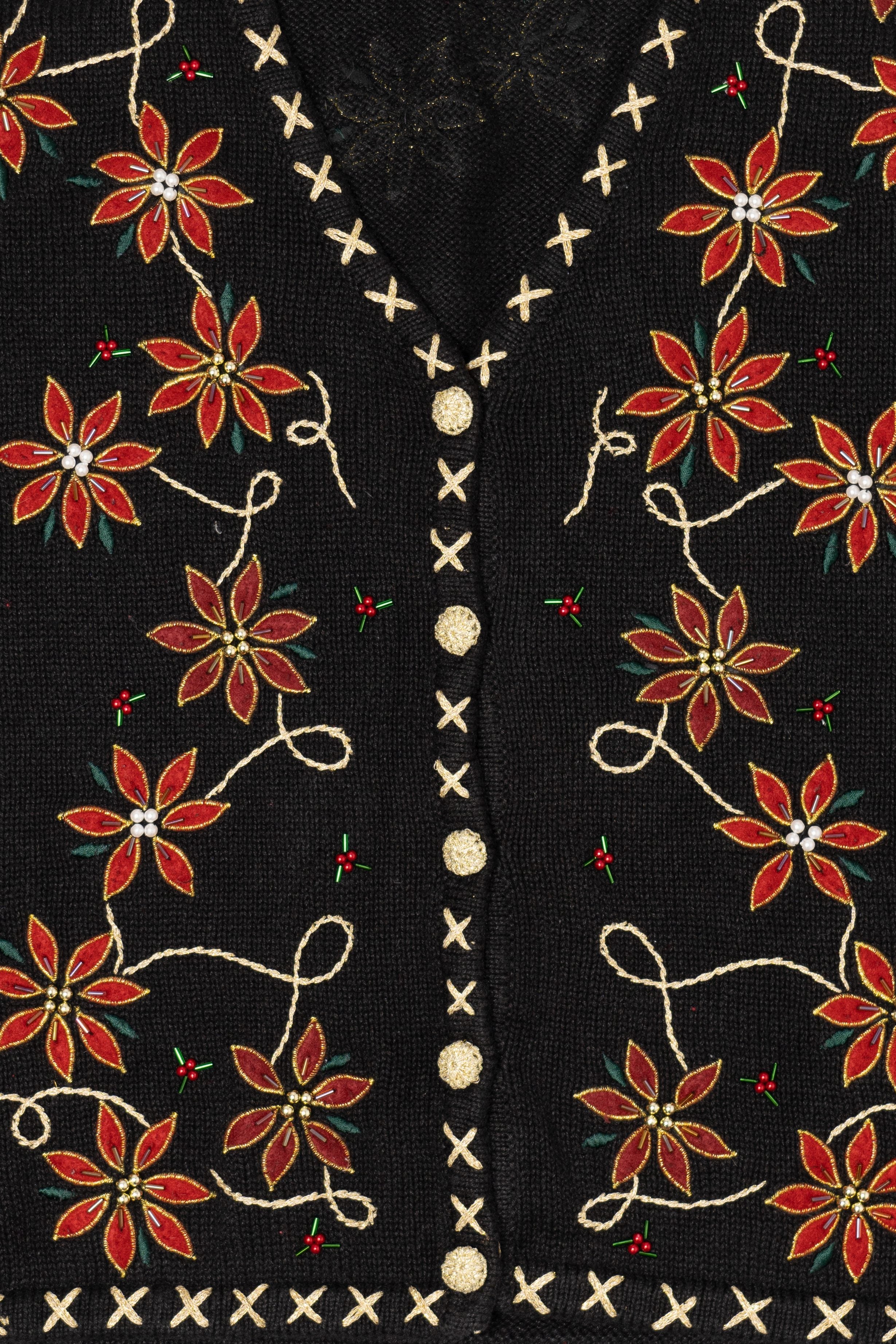 Vintage Black Bobbie Brooks Poinsettias Ugly Christmas Vest (1990s)