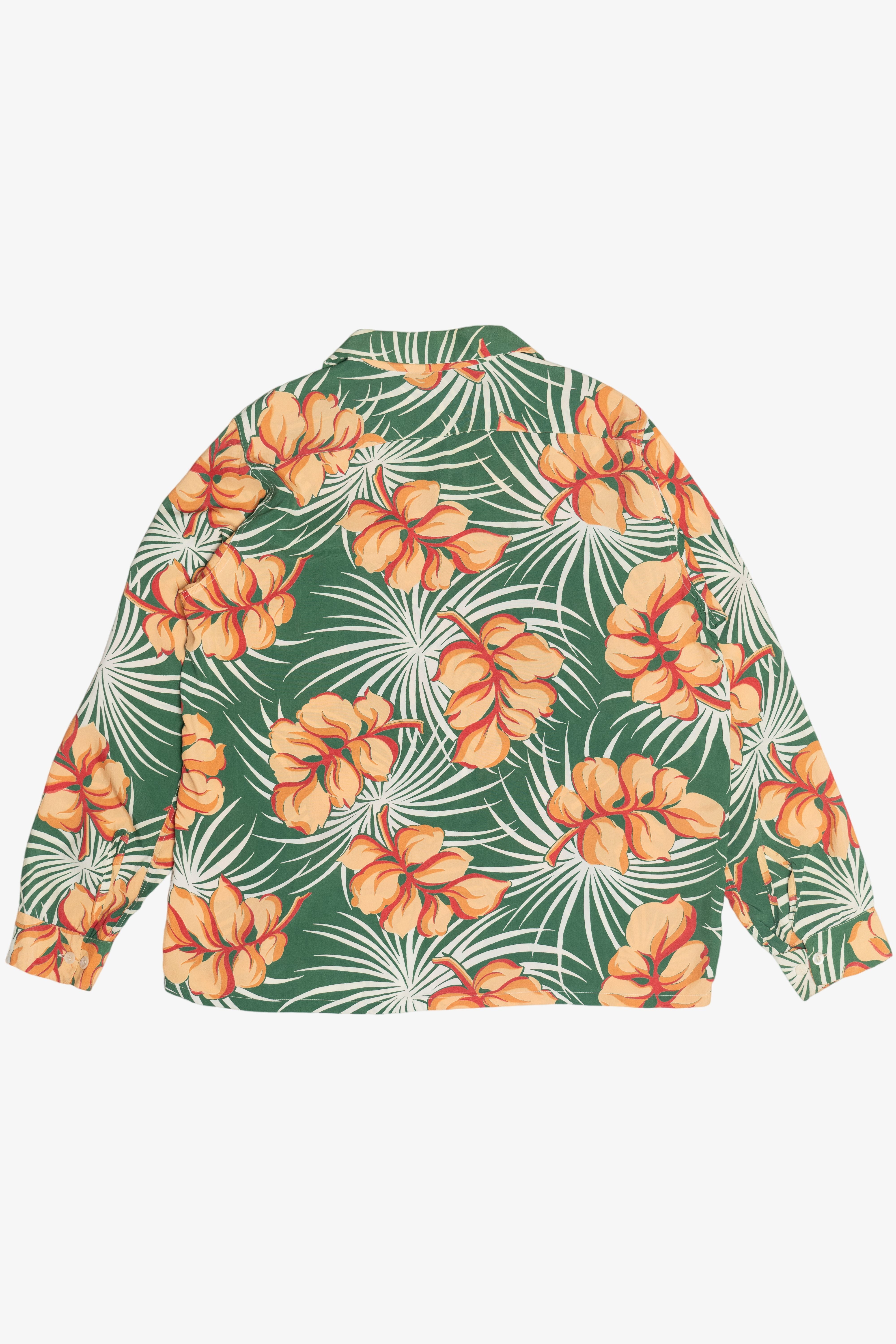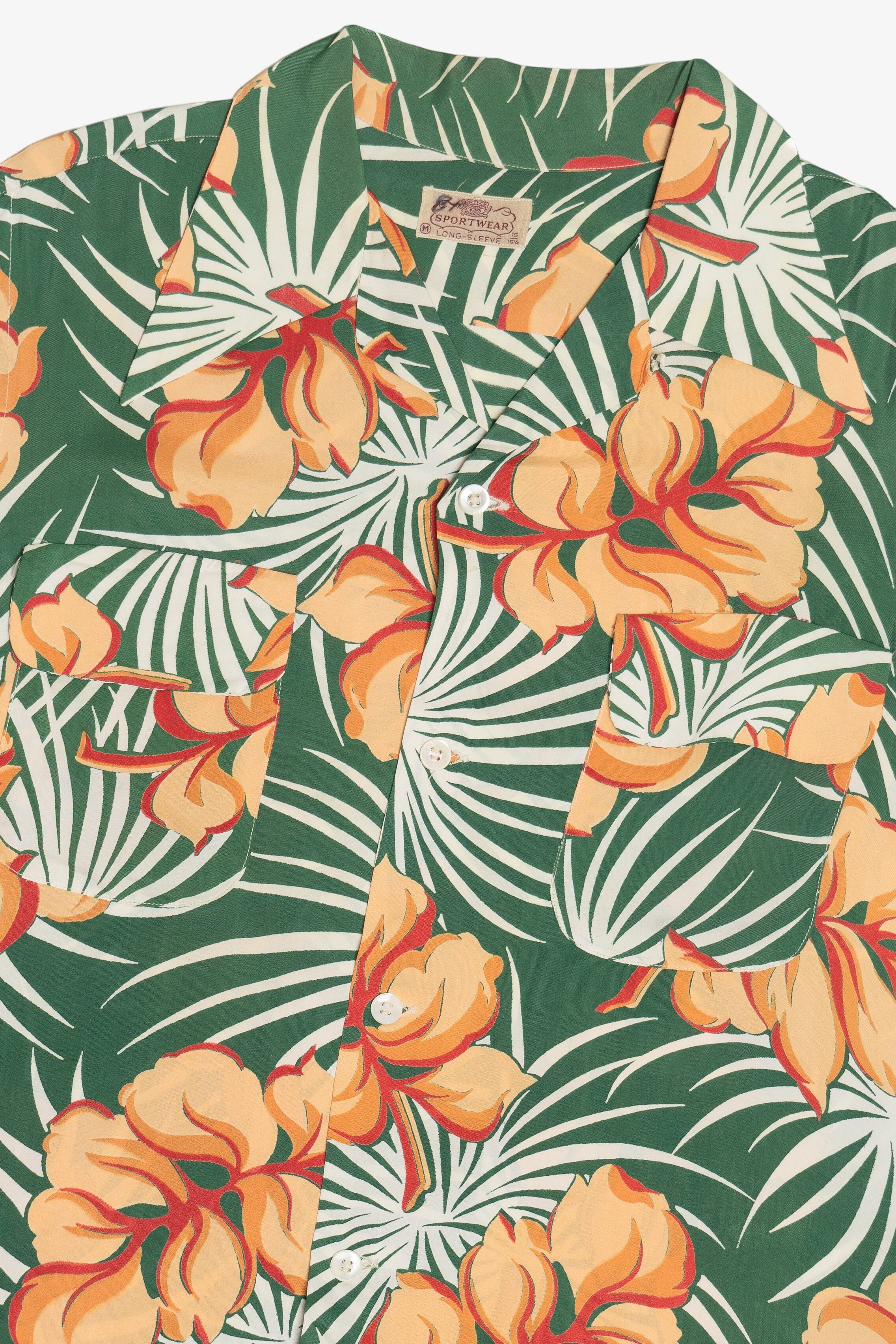 Rare Vintage Hawaiian Shirt With Loop Collar And Double Pockets Sportwear Long-Sleeve 40/50s