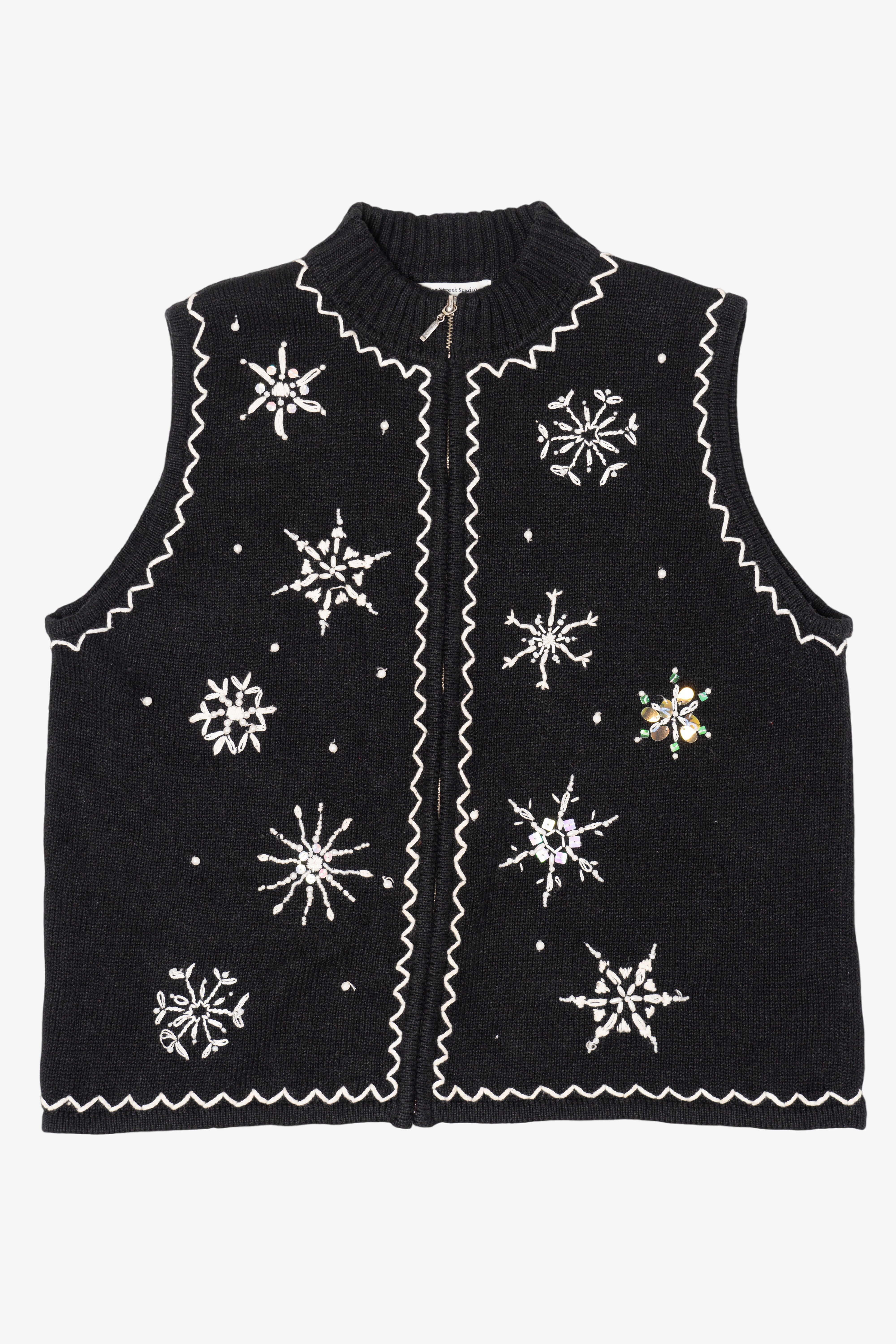 Vintage Black Mercer Street Snowflakes Ugly Christmas Vest (1990s)